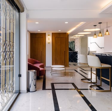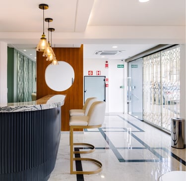 Ambiente sofisticado e acolhedor para relaxar, conversar ou trabalhar.