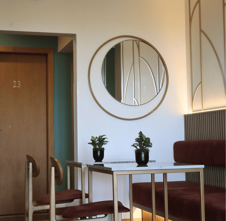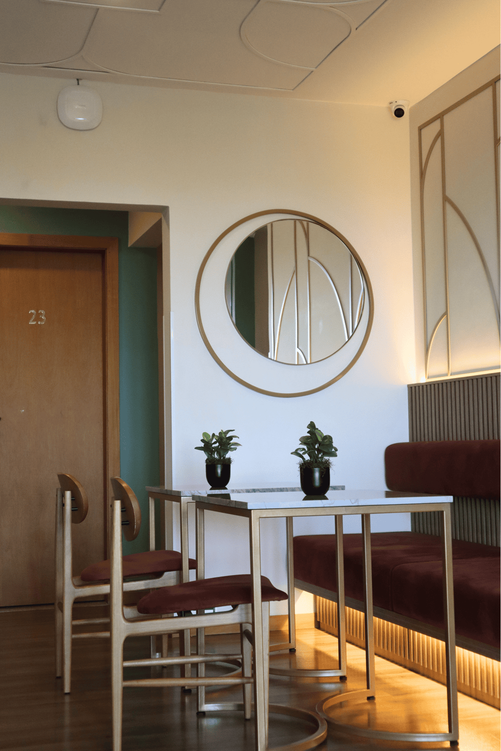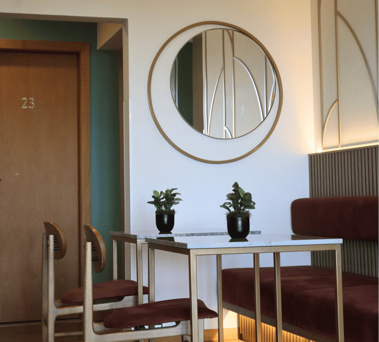 Cada categoria entrega conforto, organização e uma atmosfera moderna inspirada no Art Déco.