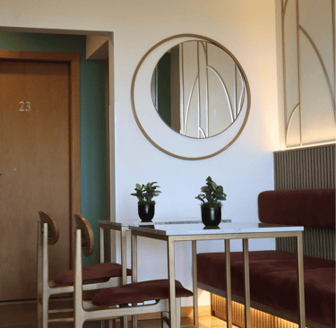 Hotel totalmente reformado, com design art déco contemporâneo, elegante e funcional.