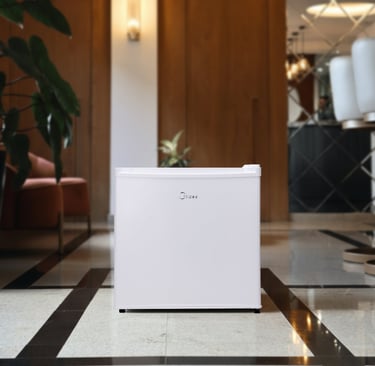 As suítes Luxo Família, Casal Executivo e Duplo Padrão agora contam com frigobar Midea, trazendo ainda mais praticidade e comodidade para seus dias no Hotel Varsóvia Express.