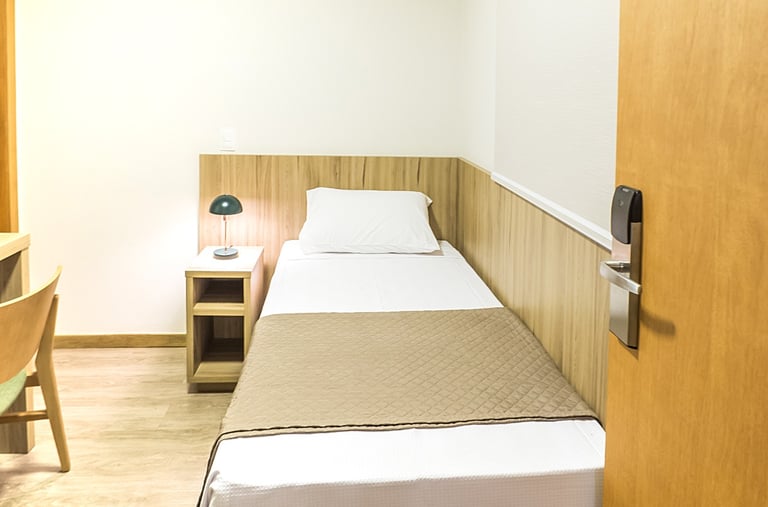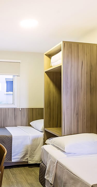 Com duas camas de solteiro, o Padrão Duplo foi pensado para quem viaja acompanhado, mas prefere dormir separado. É a escolha ideal para amigos, colegas de trabalho ou familiares que buscam praticidade e conforto.