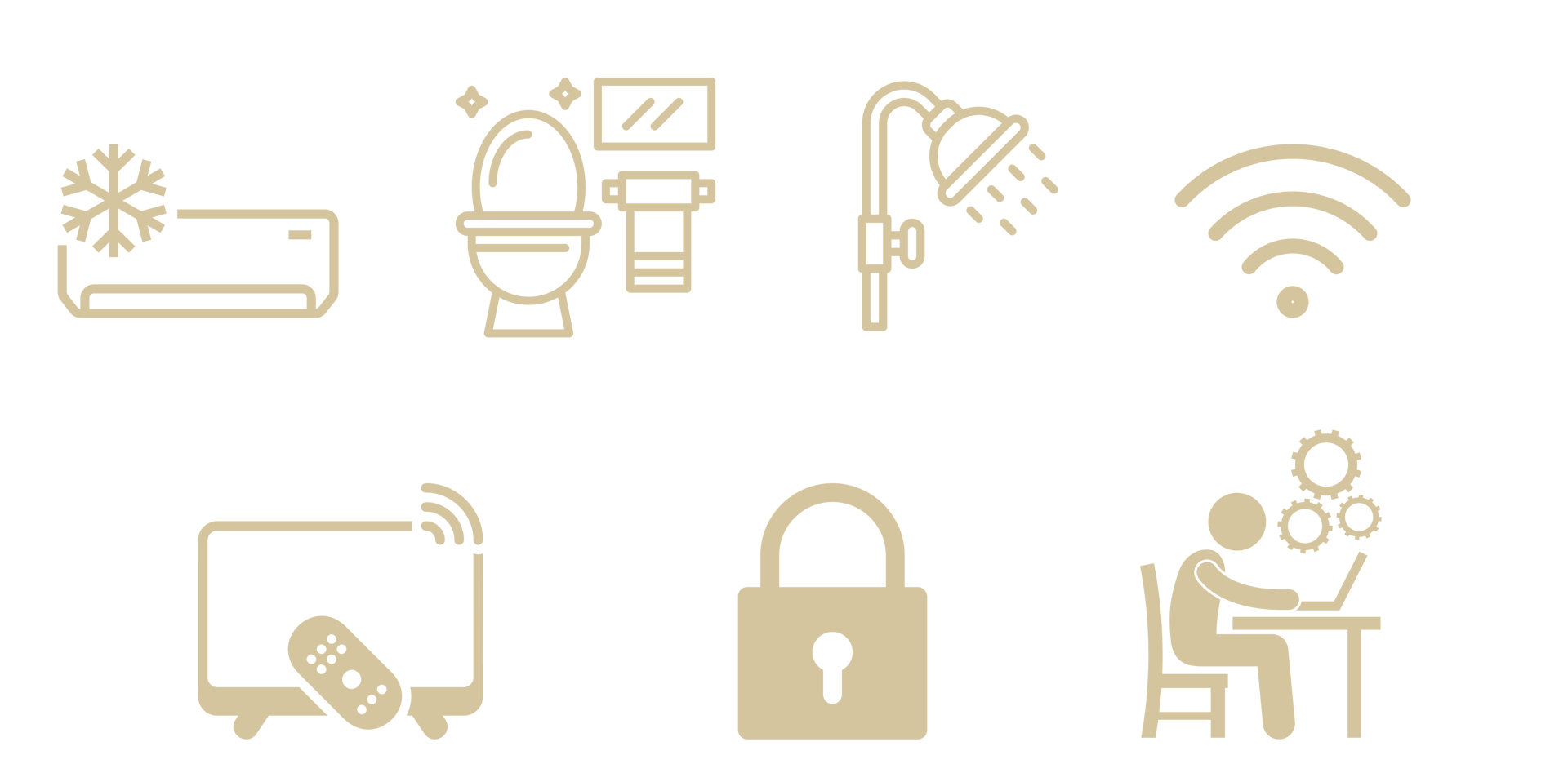 Cada categoria entrega conforto, organização e uma atmosfera moderna inspirada no Art Déco.