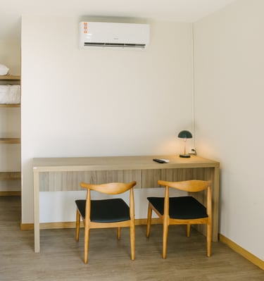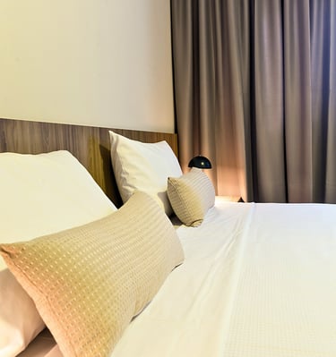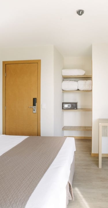 Acomodação ampla e acolhedora, perfeita para quem viaja com filhos ou precisa de mais espaço. Com uma cama de casal e uma cama de solteiro, o Luxo Família oferece conforto e mobilidade para até três pessoas, mantendo o bem-estar e a funcionalidade de um espaço moderno.